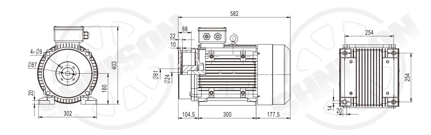 The industrial grade durable 160 frame three-phase internal shaft B34 flange mount motor is designed for harsh industrial environments, ensuring stable operation despite dust, moisture, corrosion, and other challenging conditions. The motor features a heavy-duty cast iron casing with special protective treatment, enhancing overall protection and effectively protecting critical internal components from environmental damage, ensuring long-term operational reliability.
