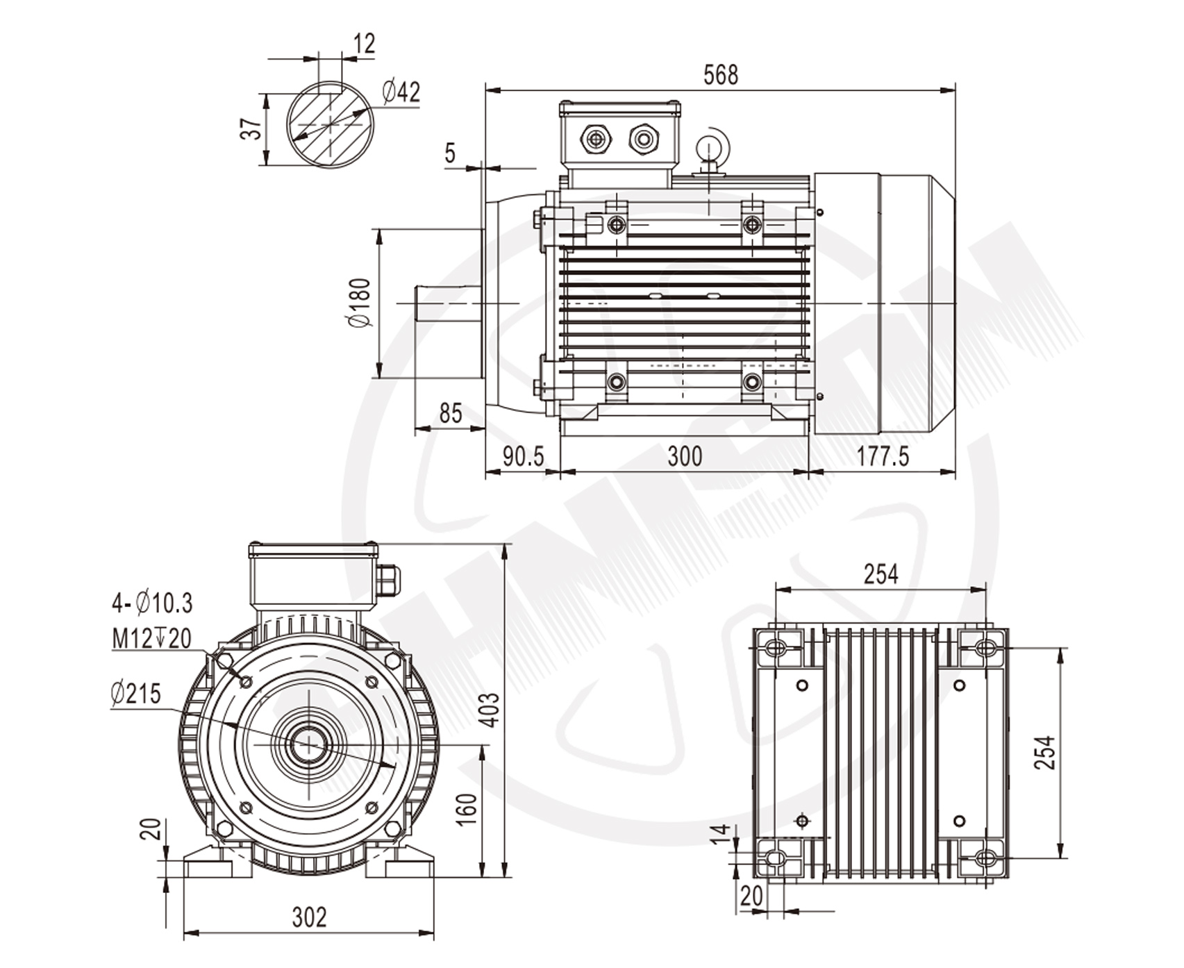 The heavy-duty pressure-resistant 160 frame three-phase external-shaft B34 flange mount motor is a power device designed for demanding operating conditions. Its reinforced structure, combined with high-strength materials and meticulous manufacturing techniques, enables the motor to maintain stable operation under high pressure and heavy loads, preventing deformation or damage from excessive external forces. This robustness makes it a reliable power source for large industrial equipment.