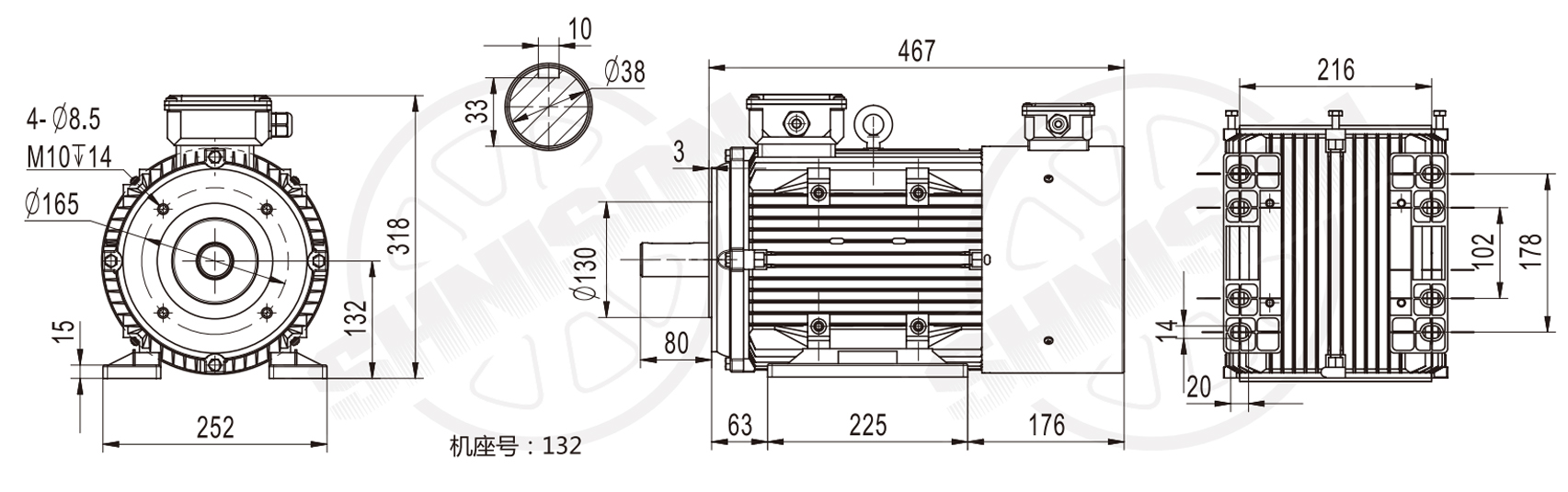 In terms of reliability, this motor utilizes a design optimized for variable-frequency drives, effectively resisting electromagnetic interference caused by the inverter and ensuring stable operation in complex electrical environments. Furthermore, key internal components utilize high-temperature-resistant insulation materials and wear-resistant bearings, further enhancing overall service life and operational reliability. Its external-shaft structure, combined with its B34 flange mounting method, allows for efficient connection and removal from the drive system, facilitating flexible application across different equipment.